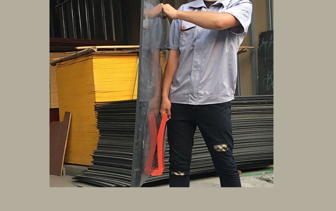 Pomocník na bezpečné a pohodlné prenášanie veľkoformátových panelov a dosiek. Držiak s protišmykovou rukoväťou vám poslúži ako vaša predĺžená ruka pri manipulácii s veľkoformátovými dielcami. Použitie pre dosky s maximálnou hrúbkou 4 cm a maximálnou hmotnosťou 80 kg. Vyrobené z ABS plastu. Rozmer nosiča: 365 * 130 * 70 mm, hmotnosť nosiča: 380g